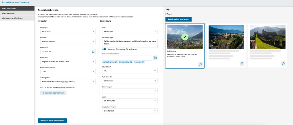 4.5. After the upload, the interface for describing individual assets opens. You can enter: